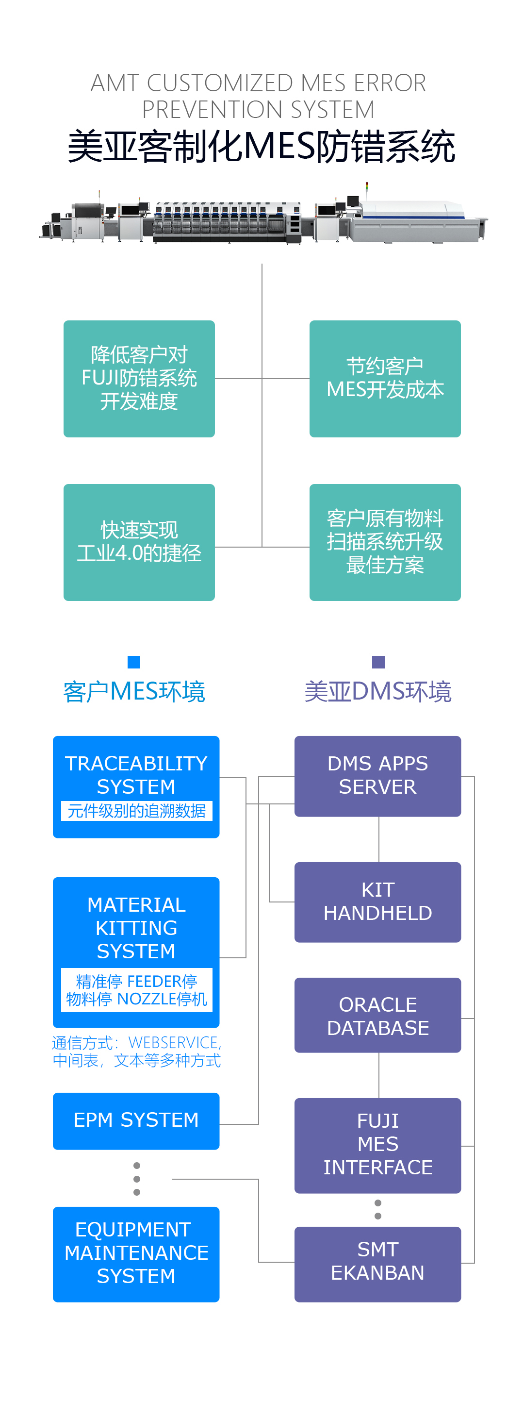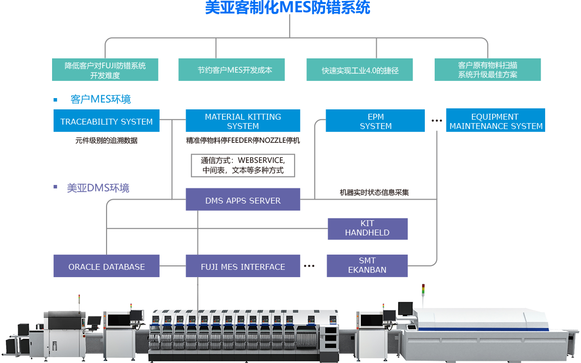 FUJI的机器很先进,它的接口开发需要开发者有很专业的FUJI设备经验,为加快客户的工业4.0的实施进度,mksport体育根据自己实力应势推出客制化MES防错系统。